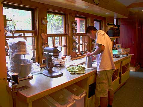 Tasks are rotated among four people and include serving dinner, preparing cabins for guests (cleaning cabins and bathrooms, making beds), assisting in breakfast, cleaning up after meals, and cleaning public areas (the Stoop, porches and bathrooms). The Chorepeople (in rotation) will be asked to spend an hour each day helping in the kitchen -- chopping, stirring, washing vegetables, and assisting the Cooks. Choreps will also assist in the Laundry Room on a rotating basis. Our staff works as a team to get the work done during the busiest times. Applicants must be at least 16 years of age. |