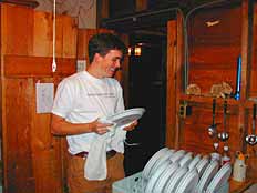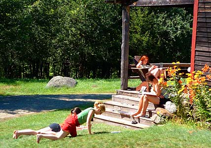Tasks are rotated among four people and include serving dinner, preparing cabins for guests (cleaning cabins and bathrooms, making beds), assisting in breakfast, cleaning up after meals, and cleaning public areas (the Stoop, porches and bathrooms). The Chorepeople (in rotation) will be asked to spend an hour each day helping in the kitchen -- chopping, stirring, washing vegetables, and assisting the Cooks. Choreps will also assist in the Laundry Room on a rotating basis. Our staff works as a team to get the work done during the busiest times. Applicants must be at least 16 years of age. |